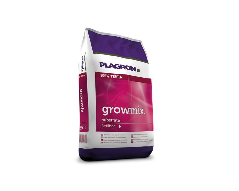 Grow Mix Plagron es un sustrato de cultivo compuesto por una mezcla de turbas blancas, negras y fibrosas, perlita y un abono mineral que ofrece un NPK de 12-14-24 de rápida liberación.Composición de Grow Mix PlagronEste sustrato Plagron contiene fibras de varios tipos y perlita, lo que le aporta la ligereza y el nivel de oxigenación que esperas de un sustrato de calidad Plagron. La presencia en abundancia del humus de lombriz Plagron asegura un crecimiento vigoroso de las plantas y una mayor retención de agua.Los nutrientes añadidos al Growmix de Plagron consisten en una combinación cuidadosamente seleccionada de fertilizantes que cubren todas las necesidades de la planta durante las tres primeras semanas.Grow Mix plagron es la base perfecta para un óptimo crecimiento y floración y responde a la calidad que Plagron suministra desde hace años.EspecificacionesConductividad: 1-1,5 mS/cmpH: 5,5-6,9Contiene: Turba, perlita y humus de lombriz25L. 100 sacos/palet50L. 60 sacos/palet