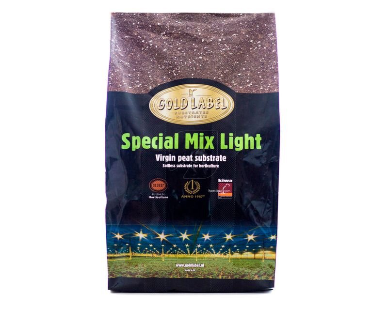El sustrato gold label, Special Mix Light es para cultivadores que prefieren añadir ellos mismos los nutrientes durante todo el ciclo de cultivo.Está hecho de la misma turba virgen blanca sueca de alta calidad que la Special Mix (link Special Mix), solo que con menos nutrientes añadidos.¿Qué beneficios aporta un menor número de nutrientes añadidos al Special Mix Light?La menos concentración de nutrientes en el Special Mix Ligh permite un enraizamiento rápido y un comienzo perfecto para el cultivo. Se puede usar con cualquier nutriente mineral u orgánico.EspecificacionesContiene: Turba blanca sueca.45 L palet de 60 sacos